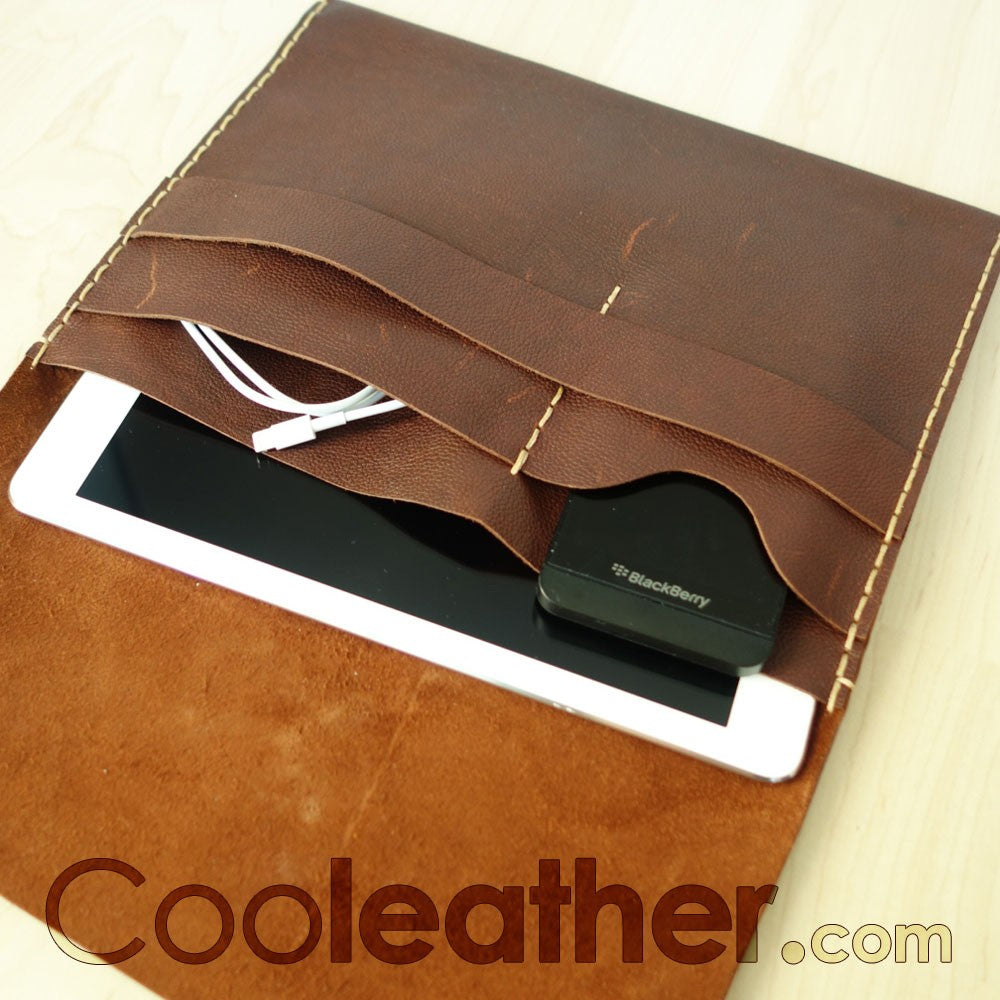 Carry your iPad4 and iPad Air with style! This Hand-stitched Cowhide leather wallet has extra two pockets that fits your smart phone and a charger etc..