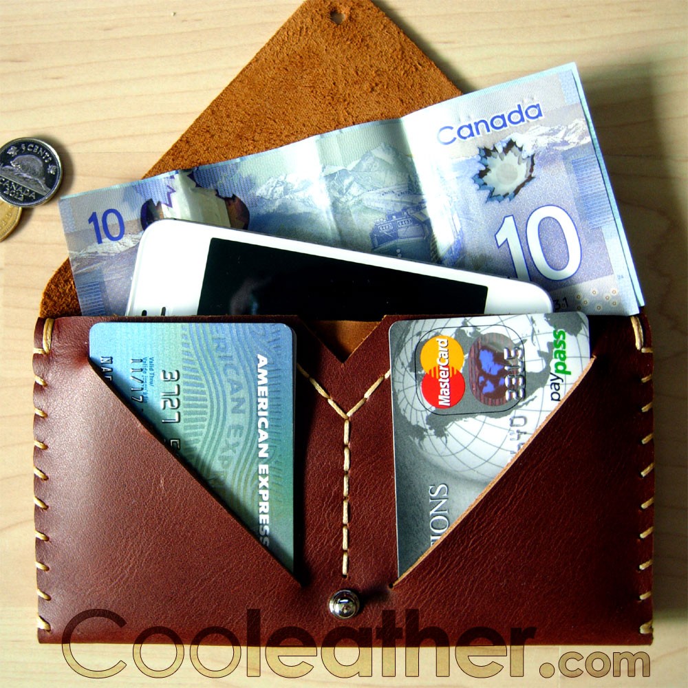 Beautiful hand-stitched leather wallet for women that can handle a lot of cards, cash and iPhone 6, iPhone 5, iPhone 4/4s, Samsung Galaxy or any other cell phone.